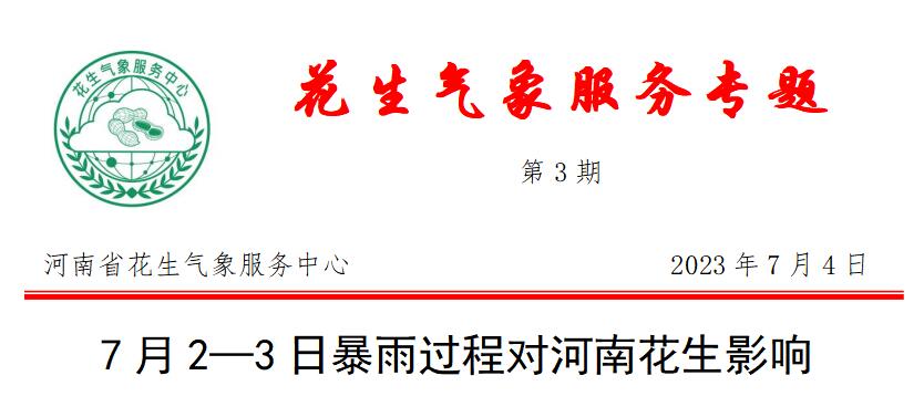 7月2—3日,我省大部出现大到暴雨、部分县市大暴雨。造成全省大部土壤偏湿,其中驻马店所有县区的部分地区、南阳南部等局地花生田出现轻到中度渍涝灾害,建议各地做好排涝除渍、花生追肥和病虫草害监测与防治工作。