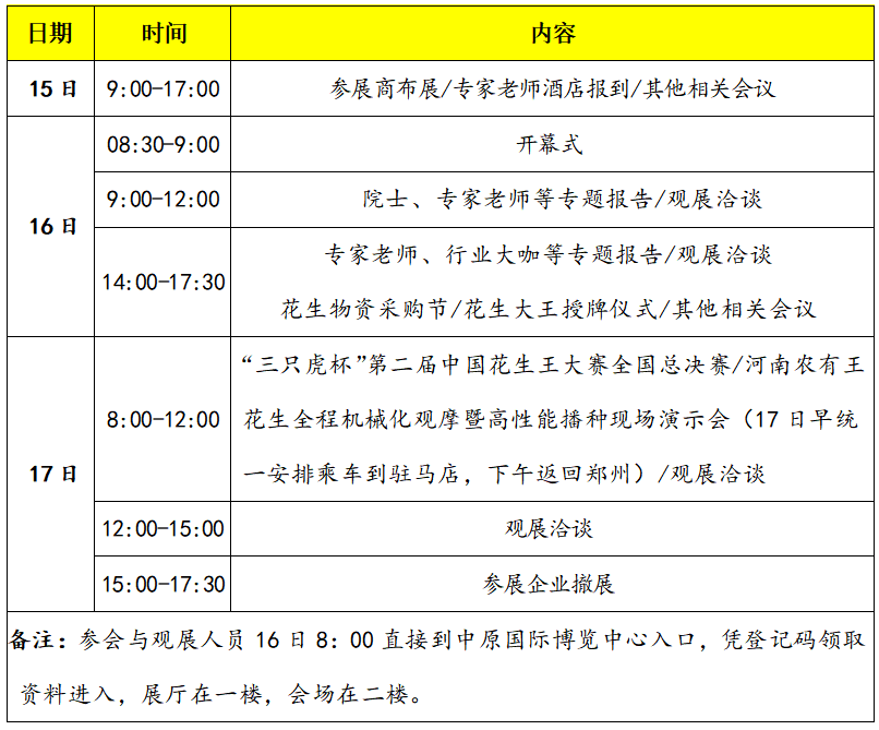 大会期间将举办“三只虎杯”第二届中国花生王大赛全国总决赛;“河南农有王花生全程机械化观摩暨高性能播种现场演示会”;期货等相关会议。同时举办花生物资采购节、花生大王授牌仪式、优秀合作伙伴颁奖、花生文化长廊等特色活动,带大家感受花生产业独有的魅力,激发大家对花生产业更深的了解和热爱。