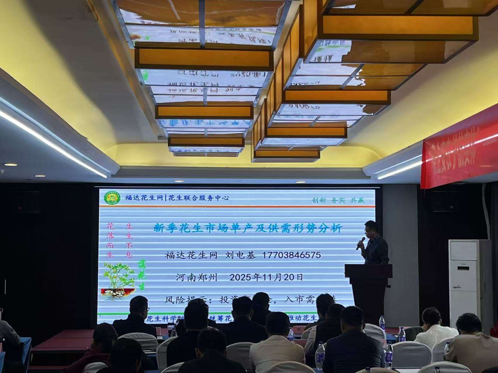 2025年11月20日,“稳企安农 护航实体”—河南益新实业产业产融基地活动之2025年花生产业风险管理交流会在郑州召开,福达花生网受邀参加与分享。