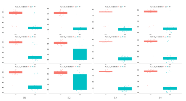 图2 三个Tag SNPs位点不同基因型间油酸含量表型变异